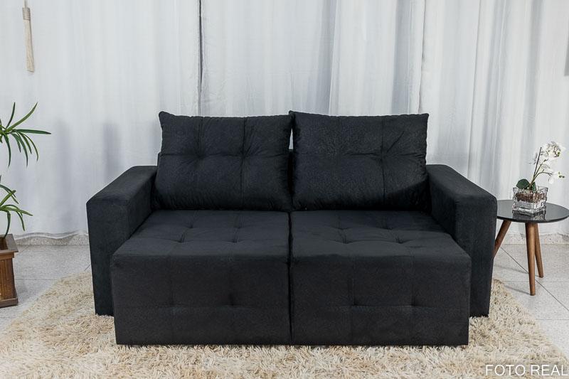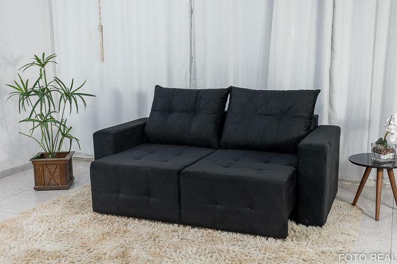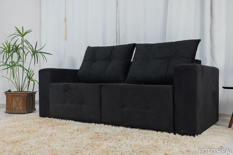 Sofá Retrátil 3 Lugares Havaí Larg. 1.80m Veludinho Preto 17