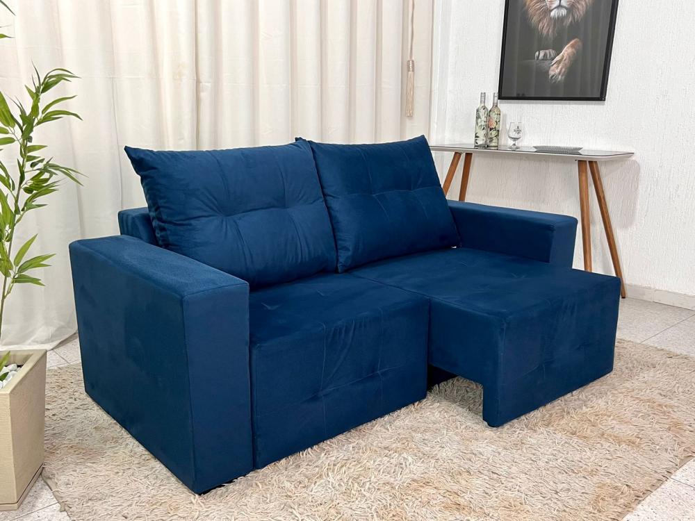 Sofá Retrátil 3 Lugares Havaí Larg.1.80m Veludinho Azul 18