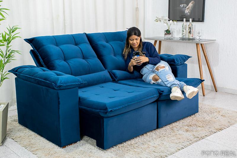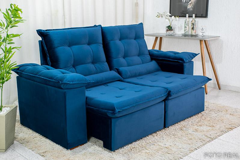 Sofá Retrátil Reclinável Madri 2.00m Veludo Azul 03 – D28 Soft
