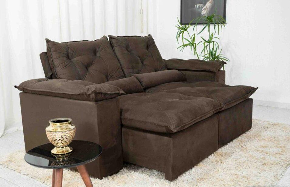 Sofá Retrátil Reclinável 3 Lug. Grécia 2.00m Veludo Marrom