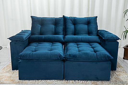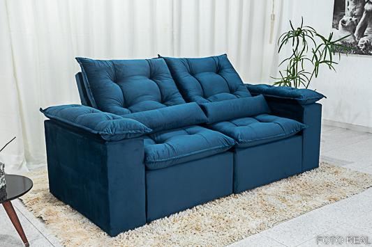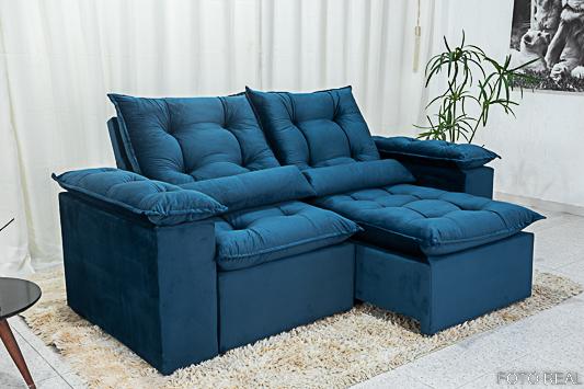Sofá Retrátil Reclinável 3 Lug. Grécia 2.00m Veludo Azul