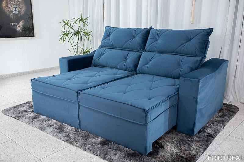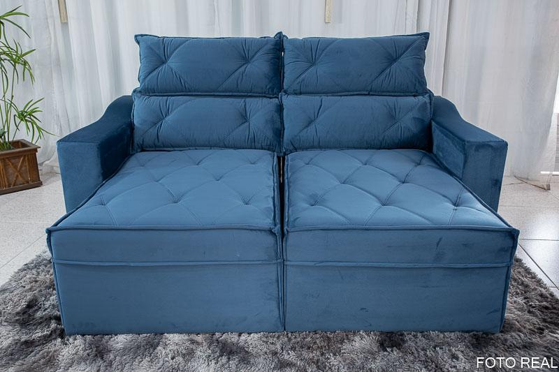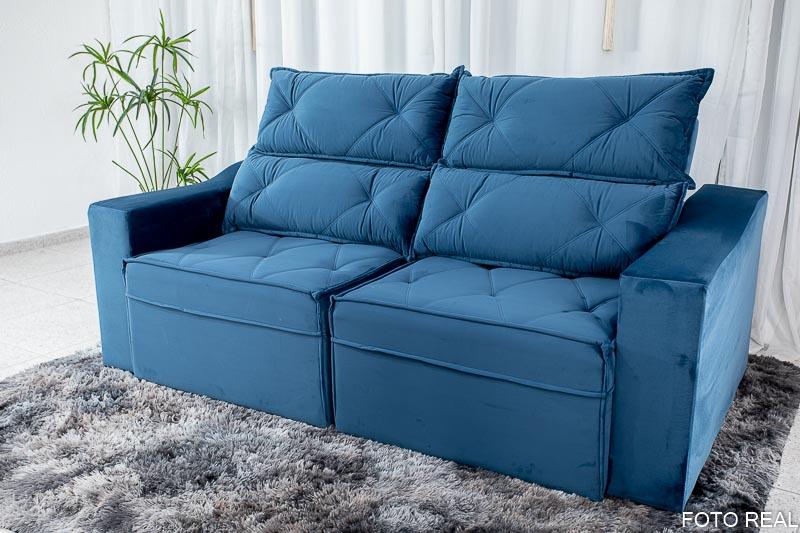 Sofá Retrátil e Reclinável 3 Lugares Moscou 2.00m Veludo Azul A16