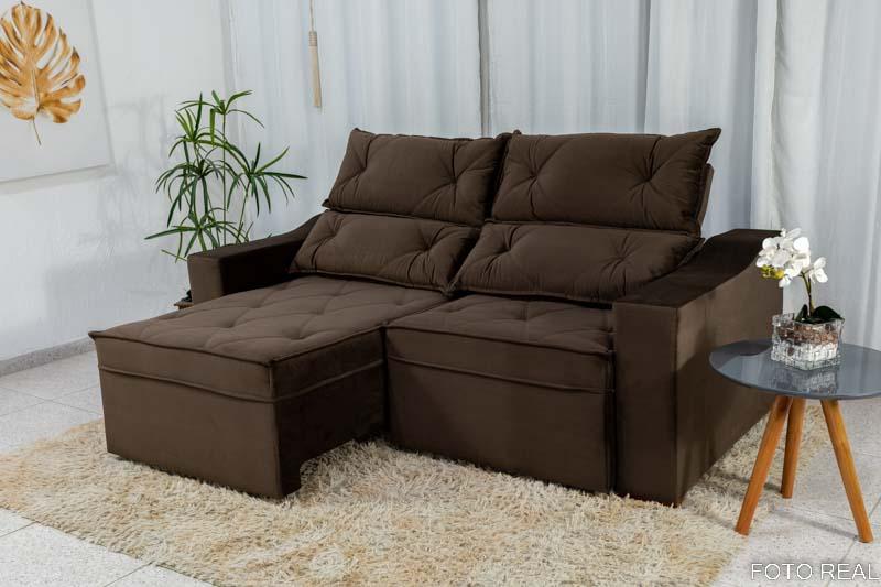 Sofá Retrátil e Reclinável 3 Lugares Moscou 2.00m Veludo Marrom A17