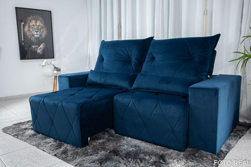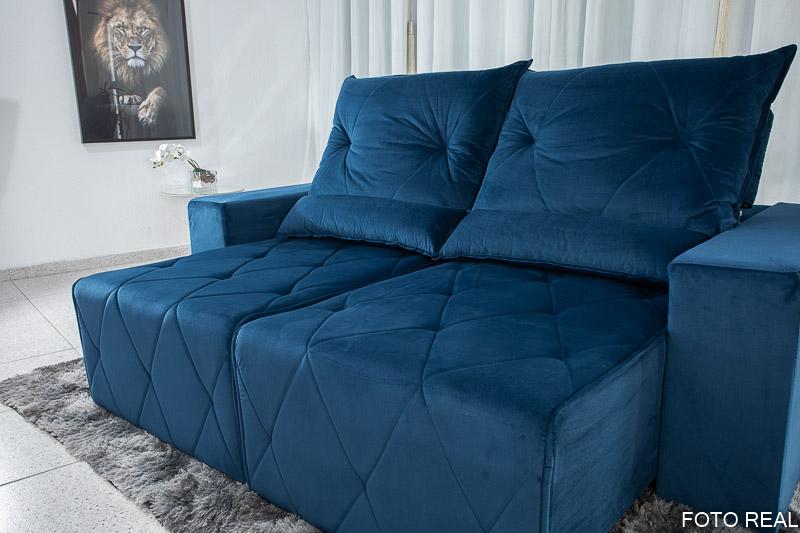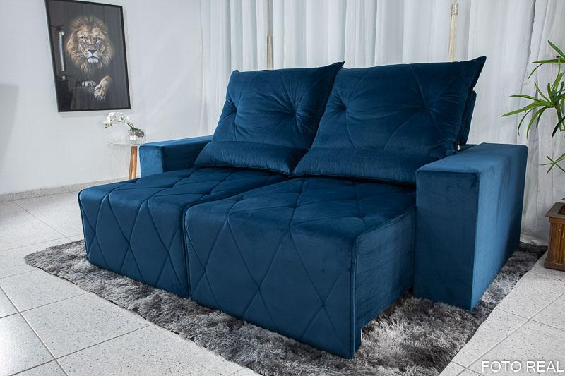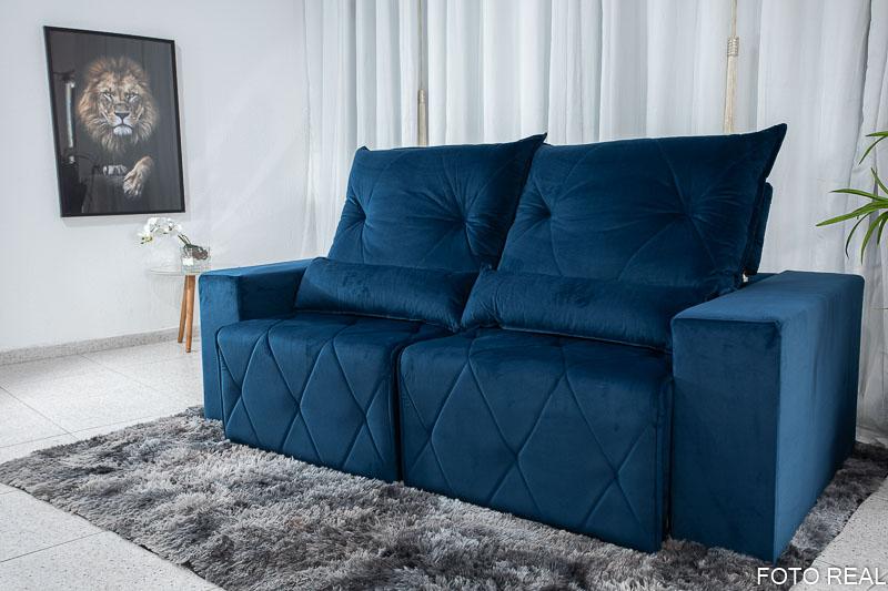 Sofá Retrátil Reclinável Belize 2.10m Veludo Azul A16