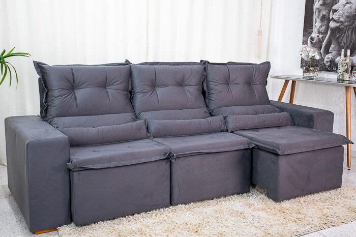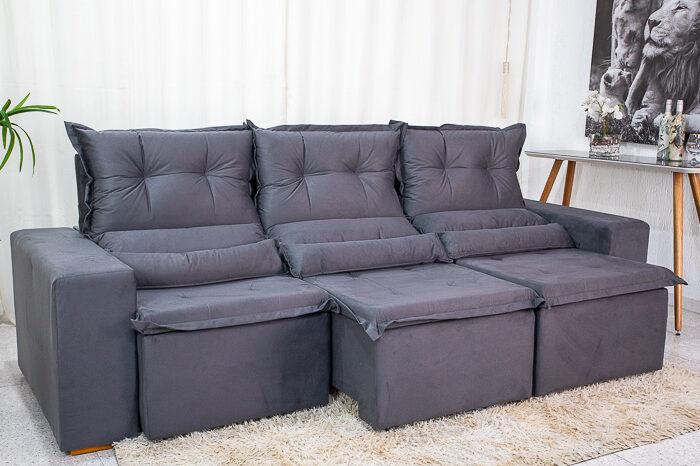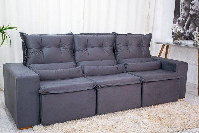 Sofá Retrátil Reclinável New Carol 2.60m Cinza 12