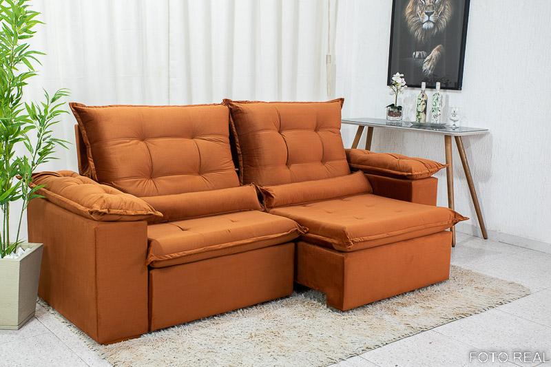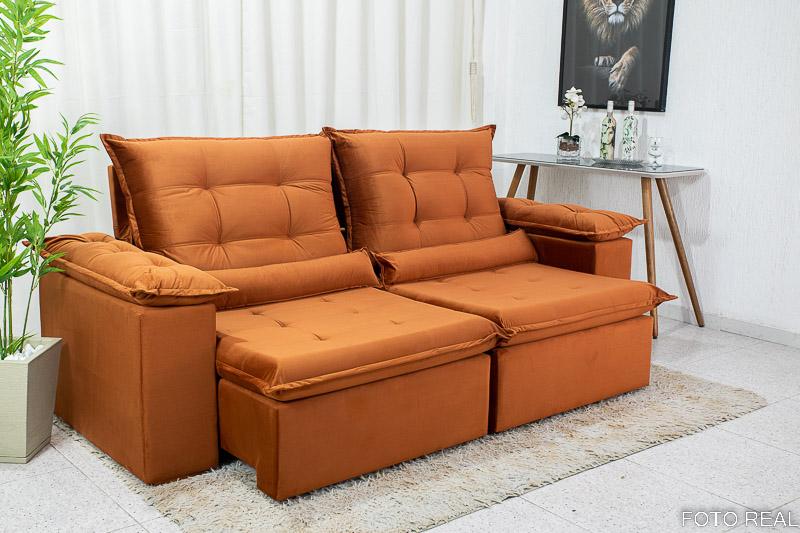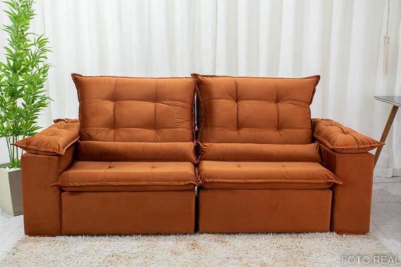 Sofá Retrátil Reclinável Madri 2.30m Veludo Terracota 24 – D28 Soft