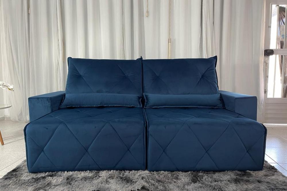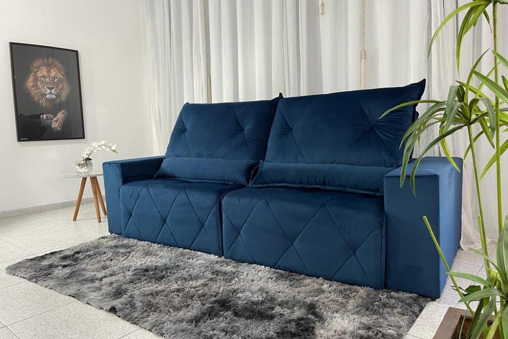 Sofá Retrátil Reclinável Belize 2.50m Veludo Azul A16