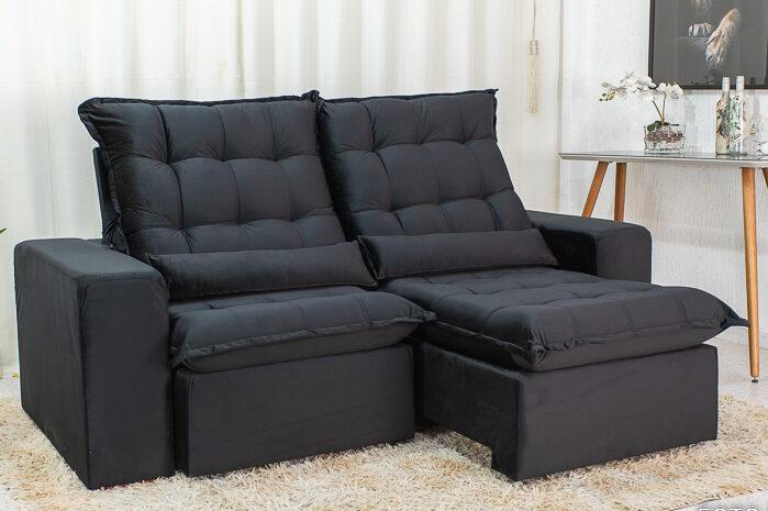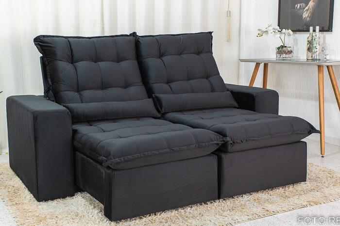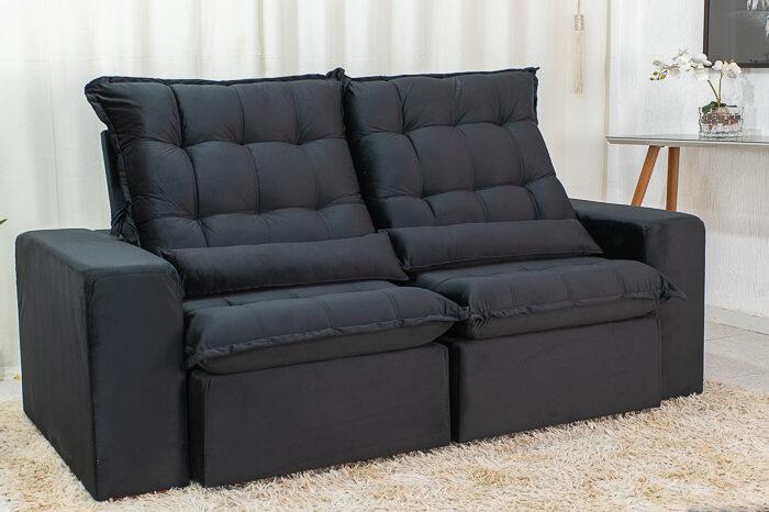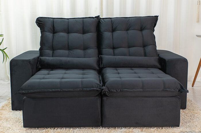 Sofá Retrátil e Reclinável Castor 2.00m Veludo Preto 21