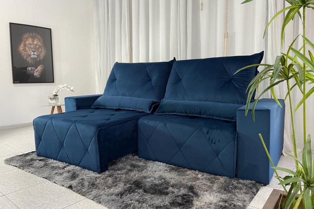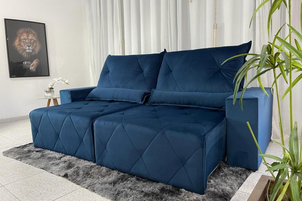 Sofá Retrátil Reclinável Belize 2.90m Veludo Azul A16