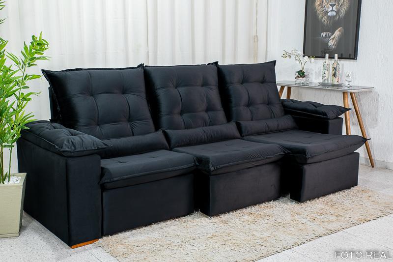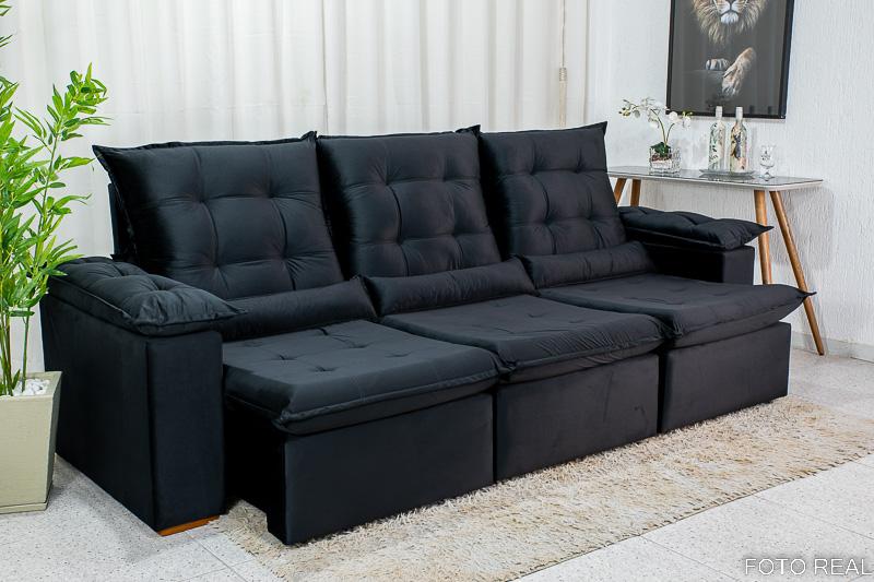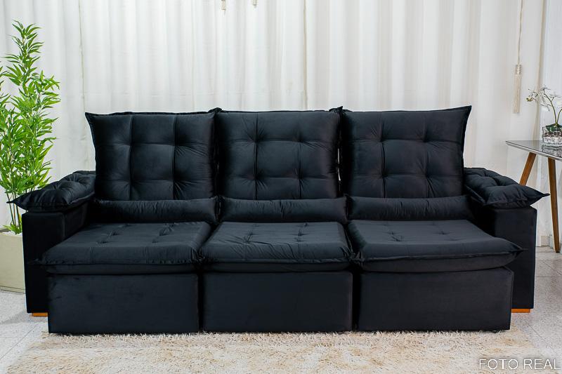 Sofá Retrátil Reclinável Madri 2.70m Veludo Preto 21 – D28 Soft