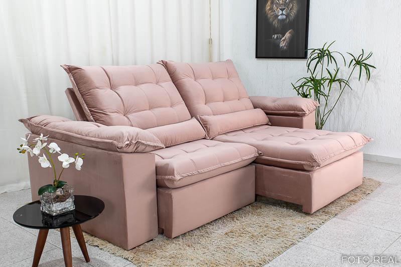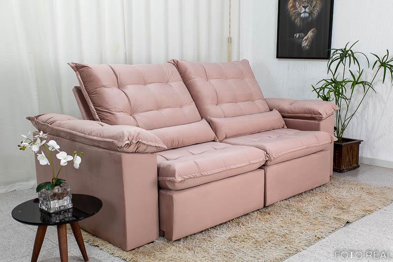Sofá Retrátil Reclinável 2.00m Emanuelly Veludo Rose 25 – D28 Soft