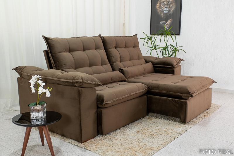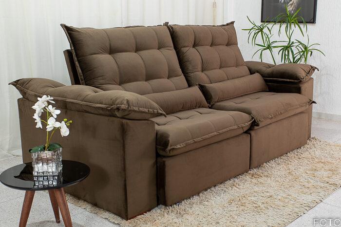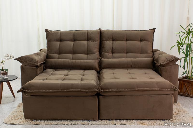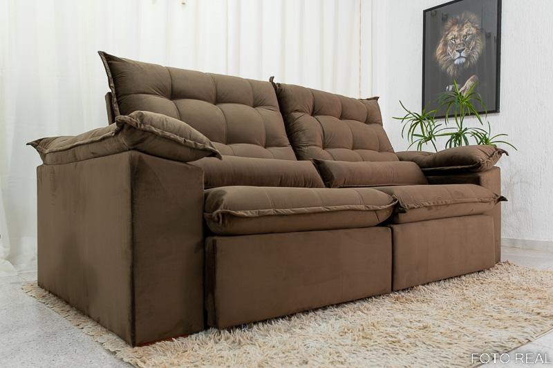 Sofá Retrátil Reclinável 2.00m Emanuelly Veludo Marrom 19 – D28 Soft