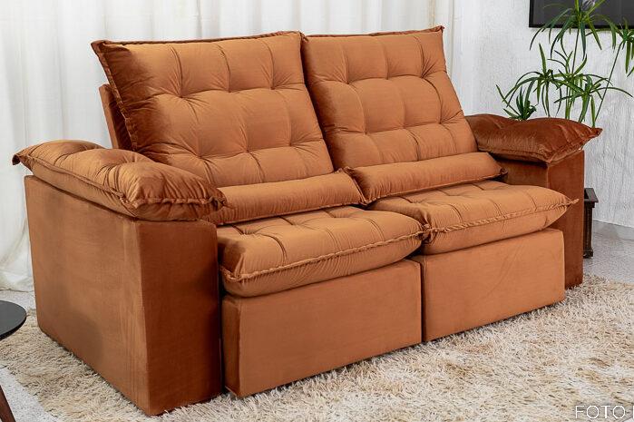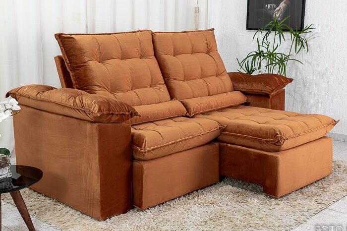 Sofá Retrátil Reclinável 2.00m Emanuelly Veludo Terracota – D28 Soft