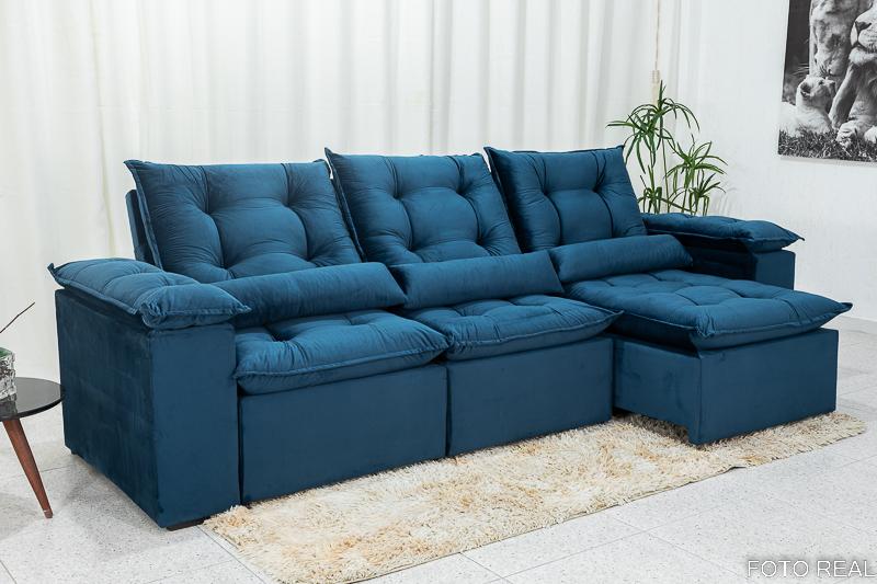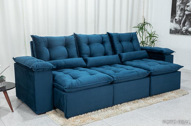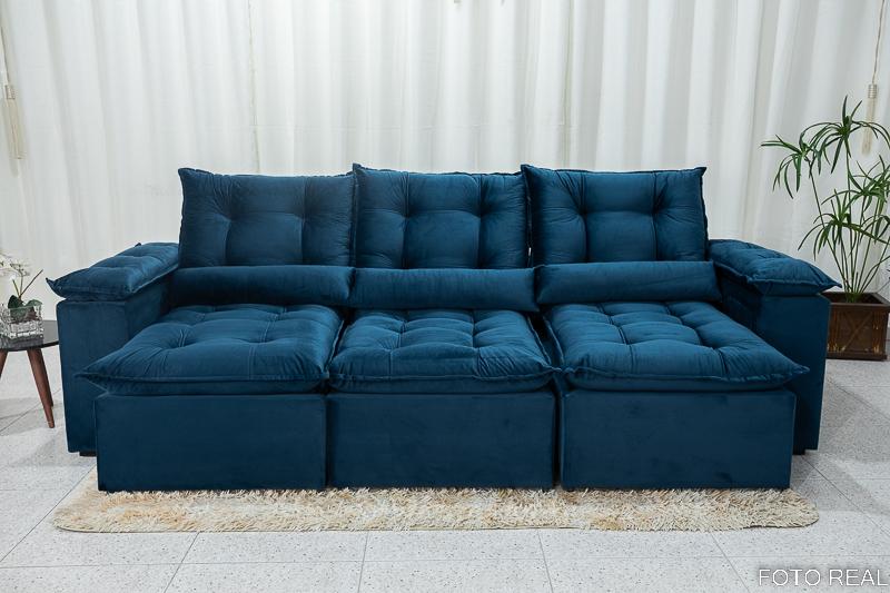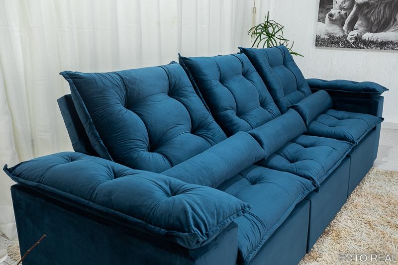 Sofá Retrátil Reclinável Grécia 2.70m Veludo Azul