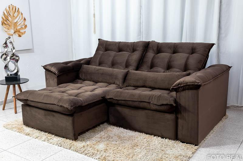 Sofá Retrátil Reclinável 2.30m Ipanema Veludo Marrom 535