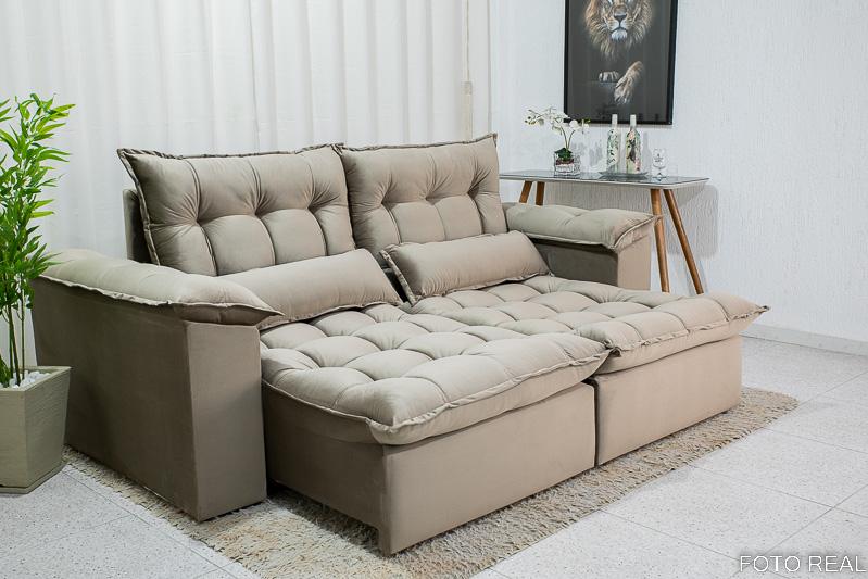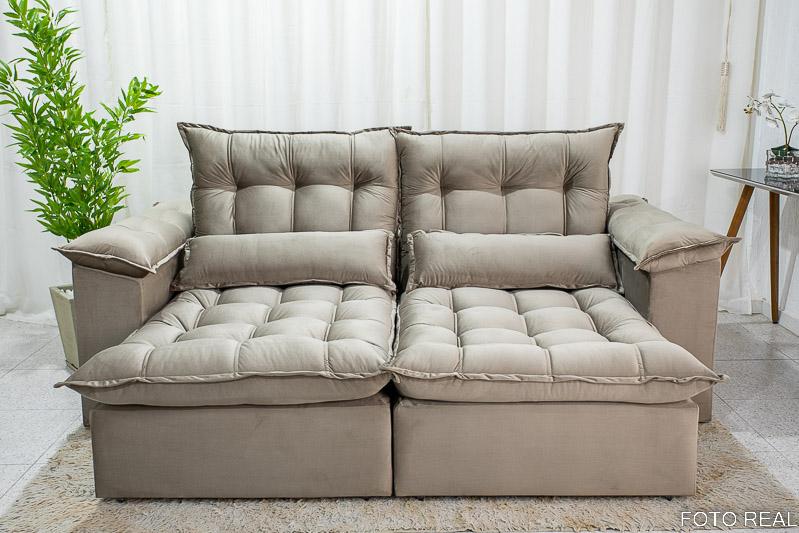 Sofá Retrátil Reclinável 2.30m Ipanema Veludo Capuccino 536
