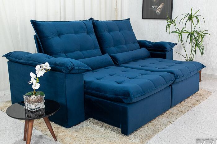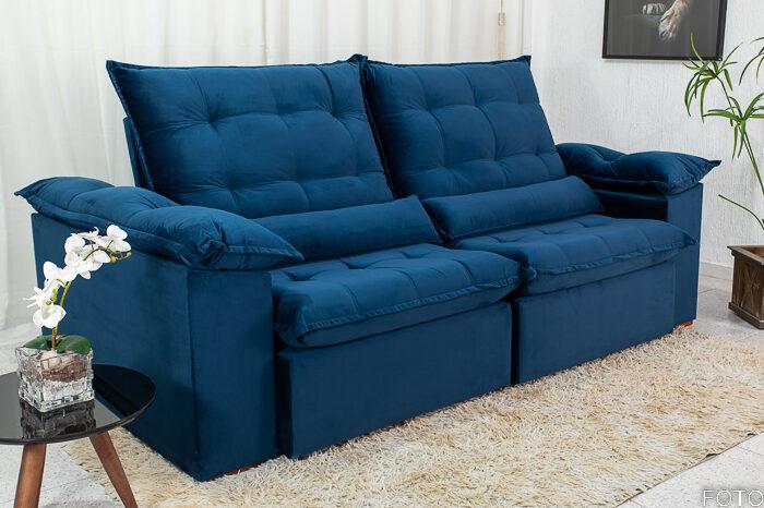 Sofá Retrátil Reclinável 2.30m Emanuelly Veludo Azul – D28 Soft