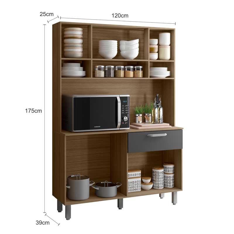 Kit Cozinha Nice Carvalho/Grafite Larg. 1.20m Poliman
