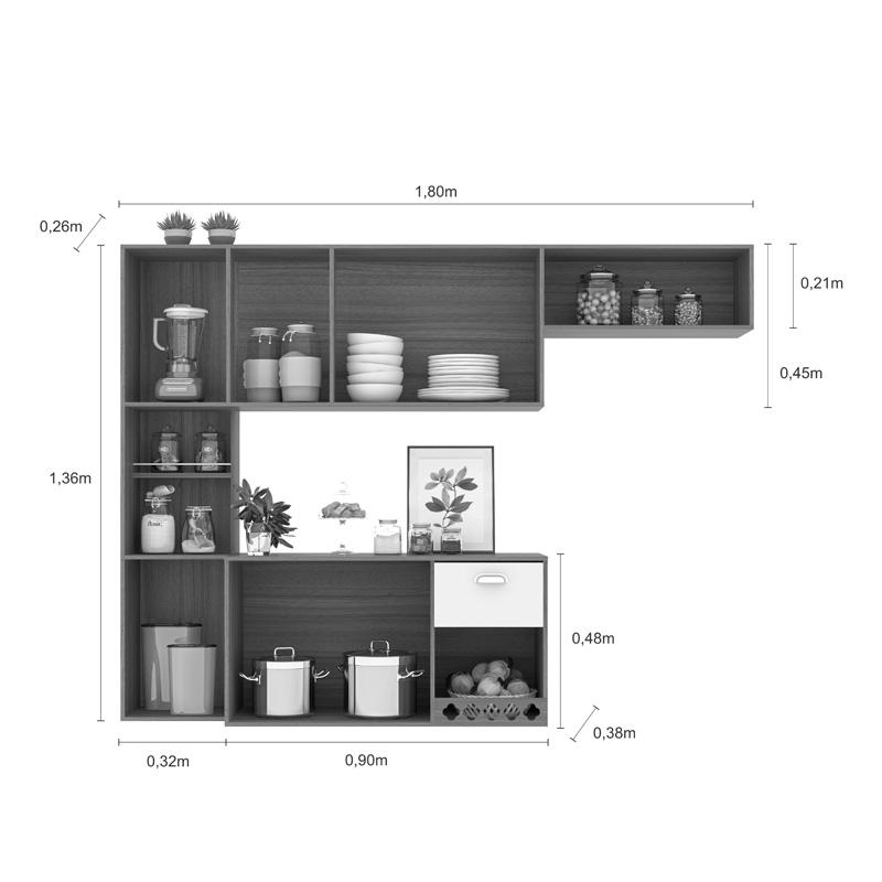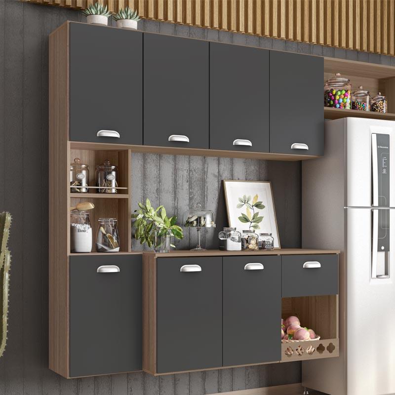 Cozinha Suspensa Mila Larg. 1.80m Carvalho/Grafite Poliman
