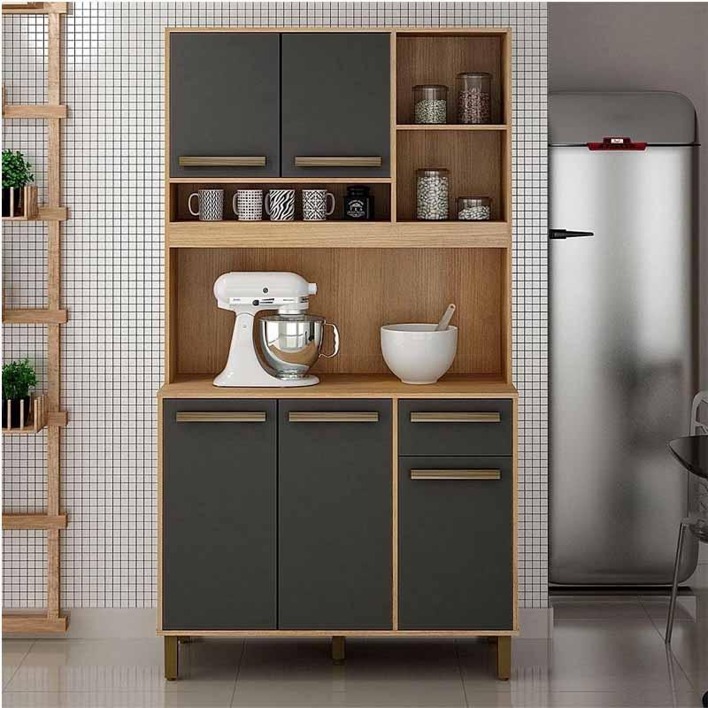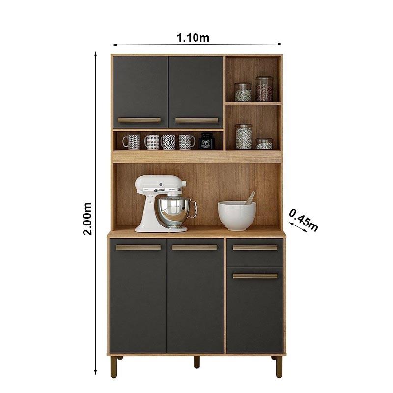 Armário Ametista 05 Portas 01 Gaveta Cinamomo/Grafite Larg.1.10m Valdemoveis