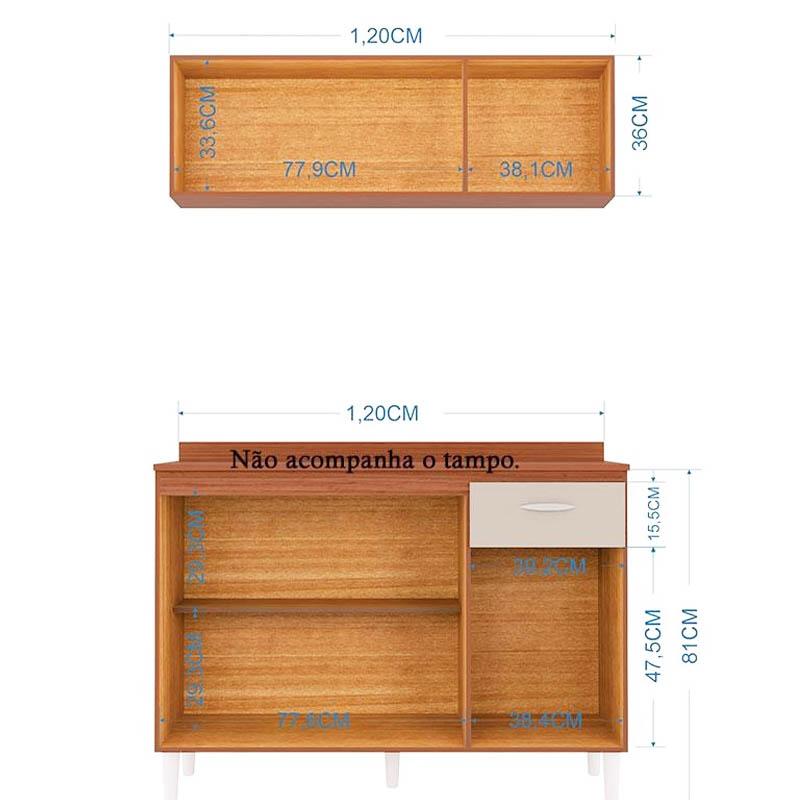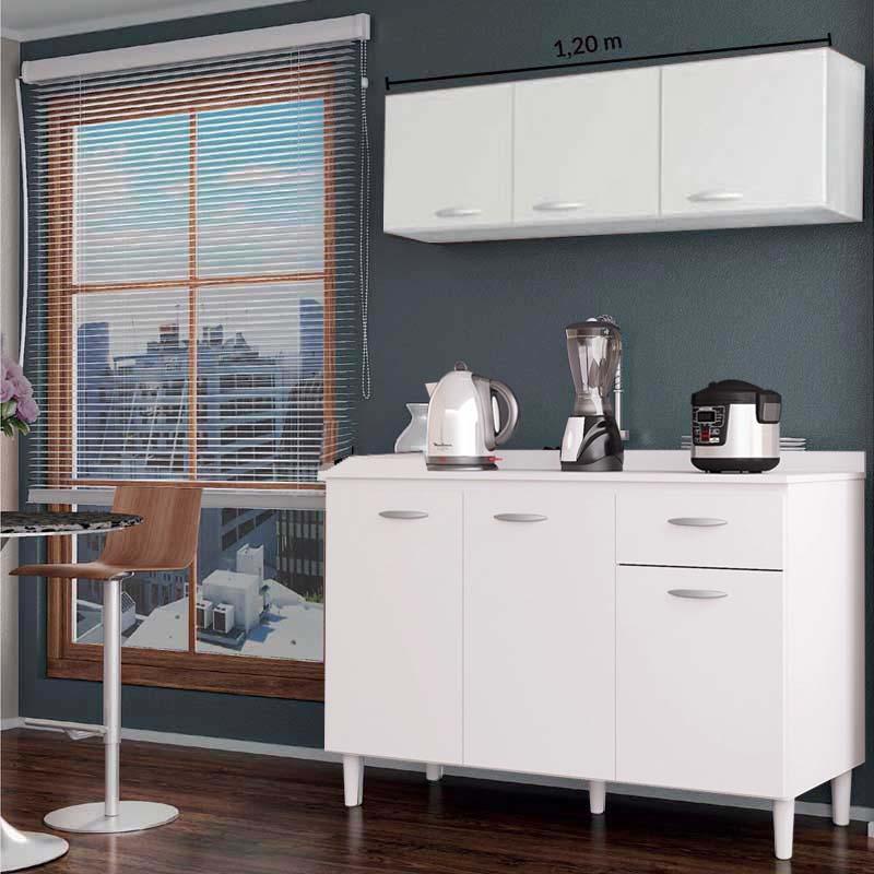 Balcão 434 3 Portas 1 Gaveta + Tampo c/ Aéreo 843 3 Portas 1.20m Branco
