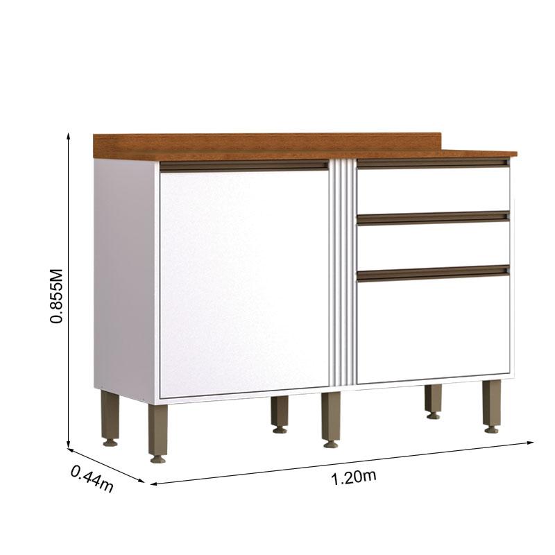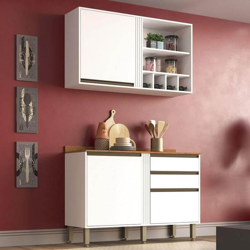 Aéreo + Balcão Cozinha Pérola Larg. 1.20m Branco Sallêto