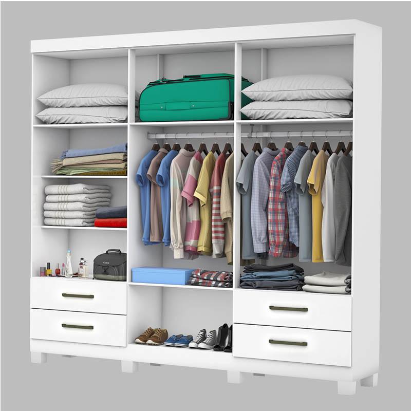 Diferencial: Roupeiro com pés, cabideiros em alumínio e quatro gavetas com corrediças metálicas.