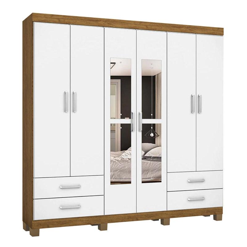 Guarda-roupa Hércules 6 Portas com Espelho Freijó/Branco Larg. 1.77m Carioca