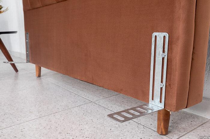 Pés: madeira com regulagem de altura,