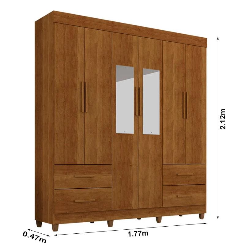 Roupeiro Verona 6 Portas 4 Gavetas c/Espelho Cinamomo Larg. 1.77m Sallêto