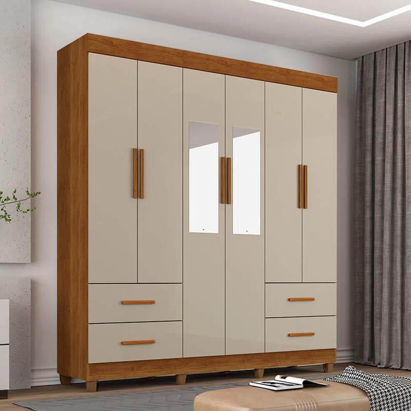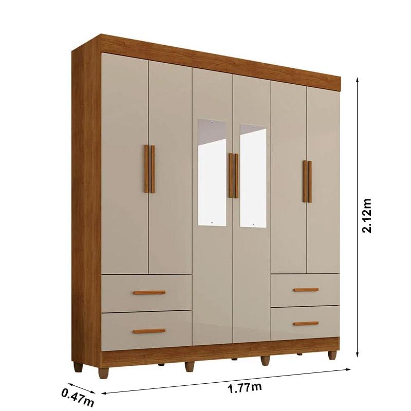 Roupeiro Verona 6 Portas 4 Gavetas c/Espelho Cinamomo/Off White Larg. 1.77m Sallêto
