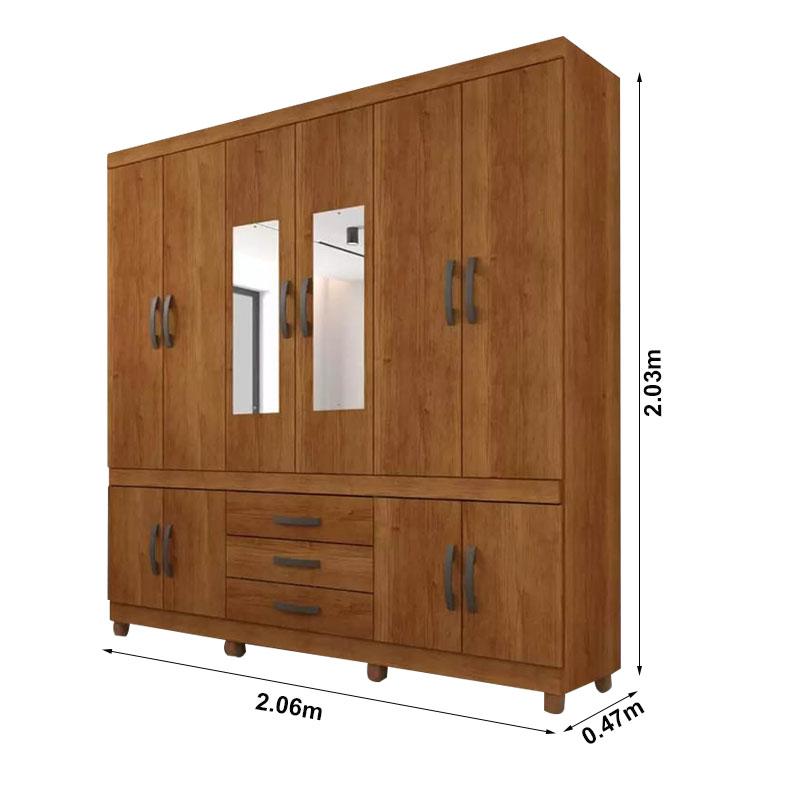 Roupeiro 10 Portas New Parma Cinamomo c/Espelho Larg. 2.06m Sallêto
