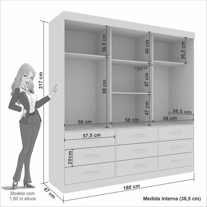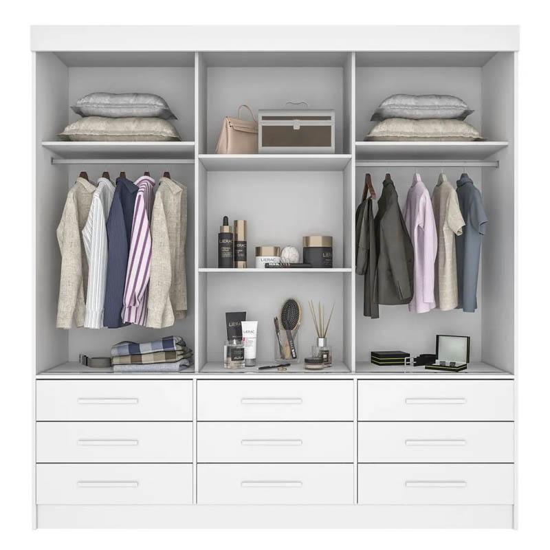 Roupeiro New Star 3 Portas 9 Gavetas Branco c/Espelho Larg. 1.80m Sallêto