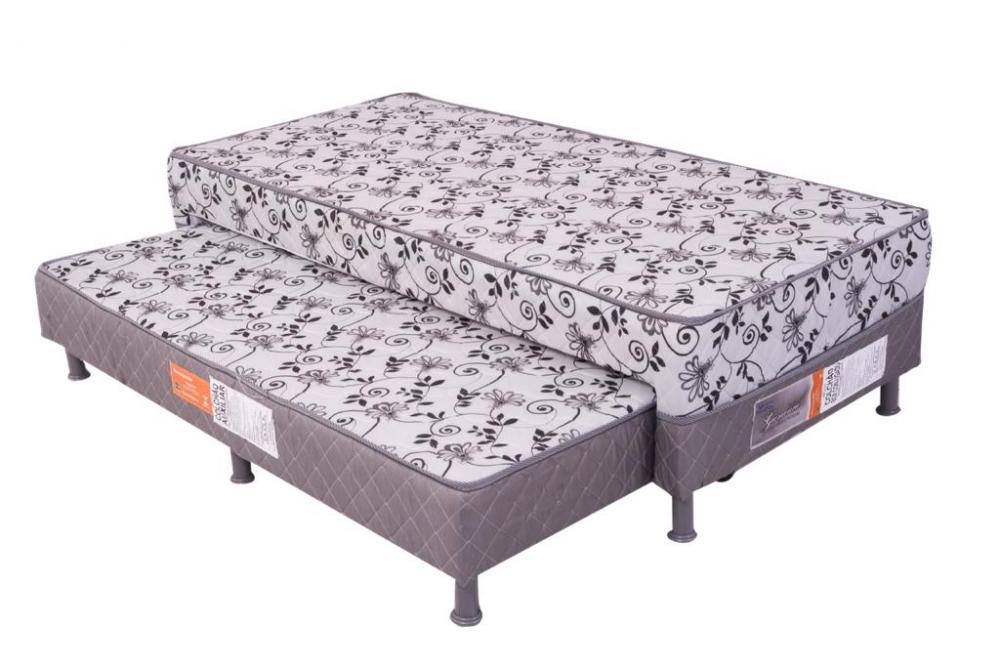 Colchobox Solteiro com Auxliar Gardenia, Côr Branco/Preto, Bonaflex, Medidas: A 0,40m L 0,88m P 1,88m, Cama Auxiliar: A 0,20m L 0,88m P 1,68m, Abertura D ou E, Estrutura em Madeira Reflorestada, Compensado de 5mm, Camada de 6cm Espuma de Poliuretano D28, Tecido 100% Poliéster, com Tratamento Antimofo e Antiácaro, Pés Plástico 12cm. Nivel de Conforto Firme (Semiortopédico) Suporte 90Kg por Pessoa.