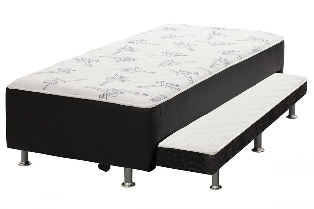 Colchobox Solteiro Union Ortopedico com Auxiliar, Côr Preto/Branco, da Ortobom, Meds: A 0,37 L 0,88m P 1,88m, Aux: A 0,11m L 0,79m P 1,71m, Pés 0,10m, Estrutura em Madeira de Eucalipto com tratamento antimofo, antifundos e broca, Camada de 5cm Espuma D28 100% Poliuretano. Com tratamento Actguard que evita a Proliferação de Fungos, Bactérias e Ácaros. Tecido de Viscose em Matelassê Bordado