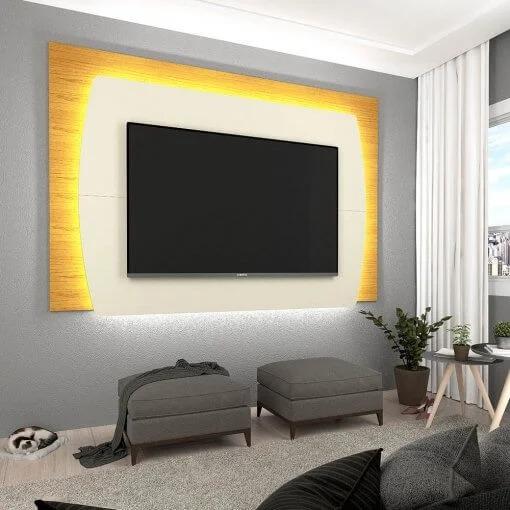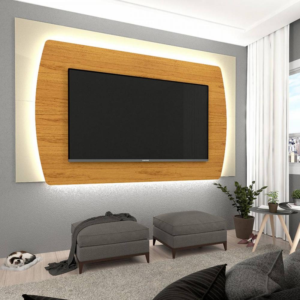 Medidas: Alt 1,37m Larg 2,195m Prof 0,07m Ps 61Kg, Estrutura 100% MDP de Paineis Sobrepostos, sendo o Painel Frontal com Bordas Laqueadas e Detalhes Arredondados, Passa Fio. Ideal para TVs até 75 Polegadas. *Observação: Kit Led Sublime 6m Opcional, vendido separadamente.* ***Faça o Combo Painel + Rack, comprando o Rack Sublime 2.2 3G Naturale/Off White.***