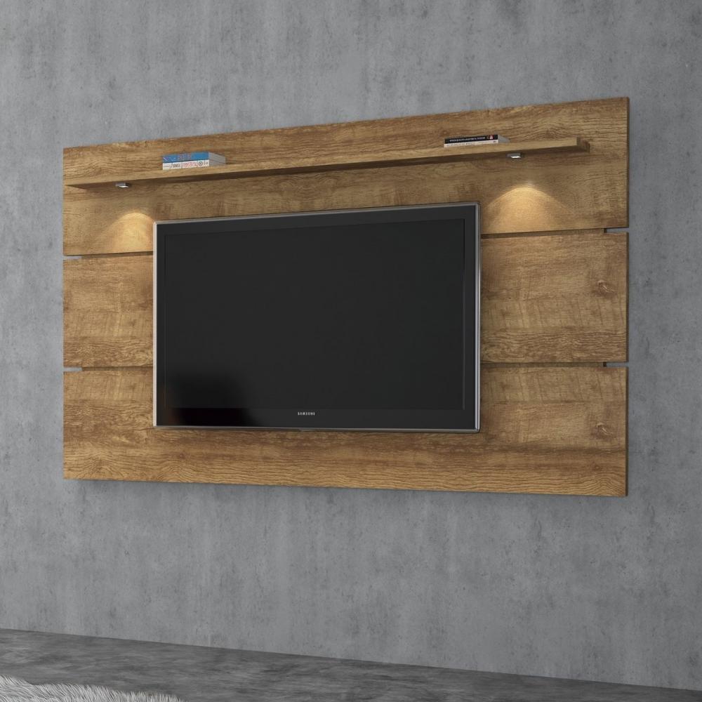 Painel Tiete, Côr Nobre, da JCM Movelaria, Medidas: Alt 1,19m Larg 2,00m Prof 0,17m, em MDP, com prateleira e luminárias em LED. Ideal para TVs até 60 polegadas.