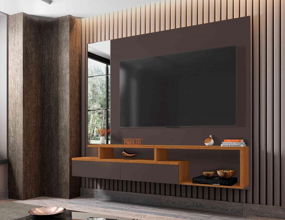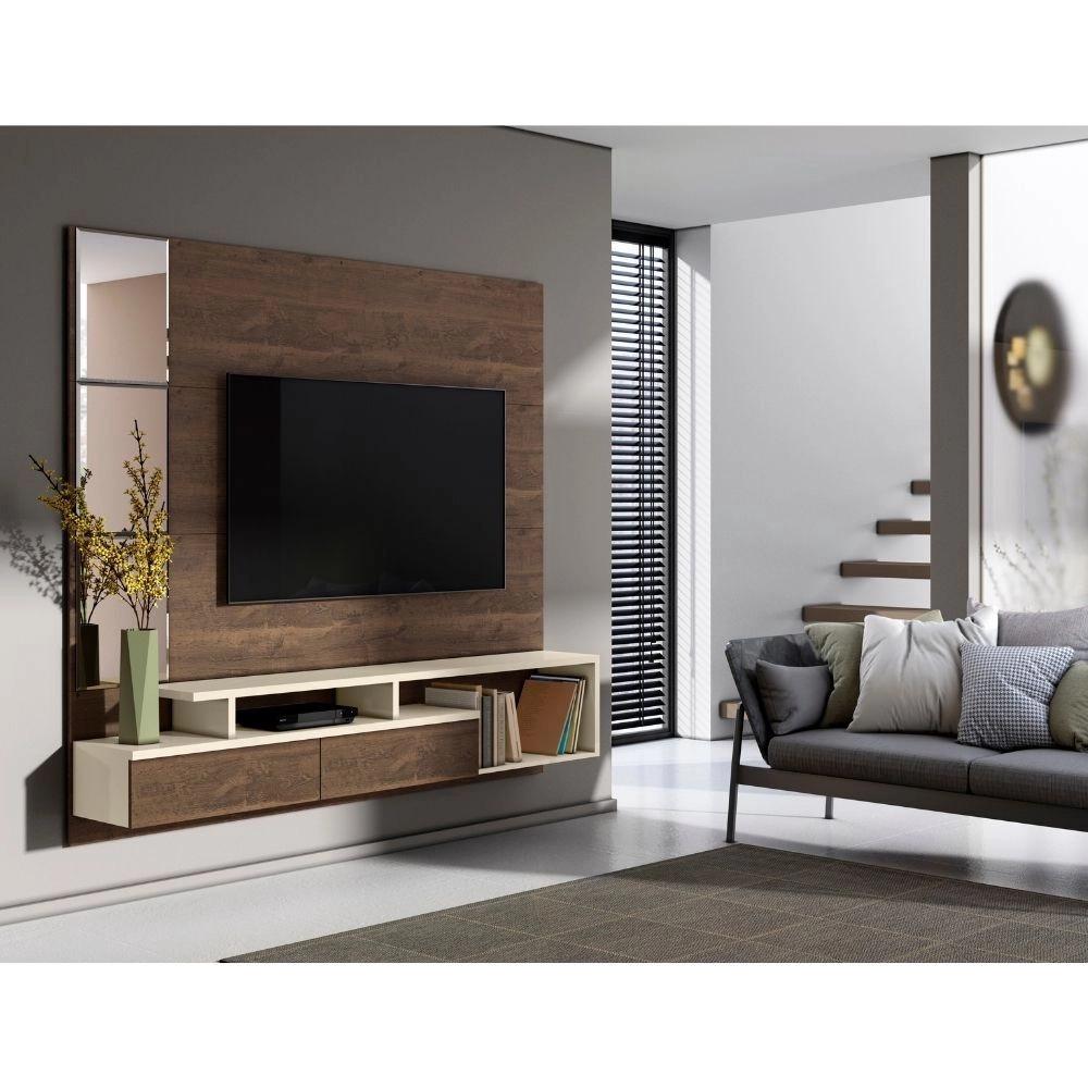 Medidas: Alt 1,70m Larg 2,00 Prof 0,342m, Estrutura 100% MDP - Tampo e Laterais MDP 25mm, 2 Portas Basculantes com Dobradiças Metálicas, Nichos para Eletroeletrôinicos e Objetos Decorativos, Lateral com Espelhos Decorativos Bisotê. Ideal para TVs até 58 Polegadas.