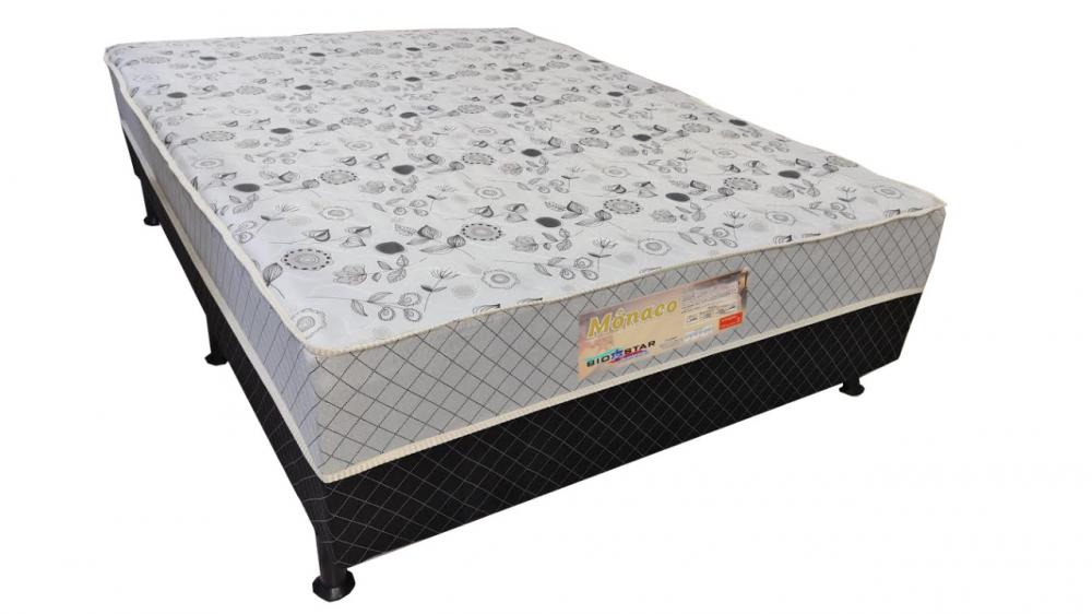 Colchobox Casal Mônaco, da Bio Star/Alto Nível, Medidas: A 0,40m L 1,38m P 1,88m. Estrutura em Madeira Reflorestada, Lâmina de Compensado de 5mm, Coberto com Lâmina de 5cm de Espuma de Poliuretano D28, Tecido 100% em Poliéster 5g/m2 Bordado com Lâmina de 1cm Espuma Convecional, Lateral em Tecido 100% Poliéster, Pés Pláticos 12cm de Altura. Nível de Conforto Semiortopédico. Suporte até 90Kg p/ Pessoa.