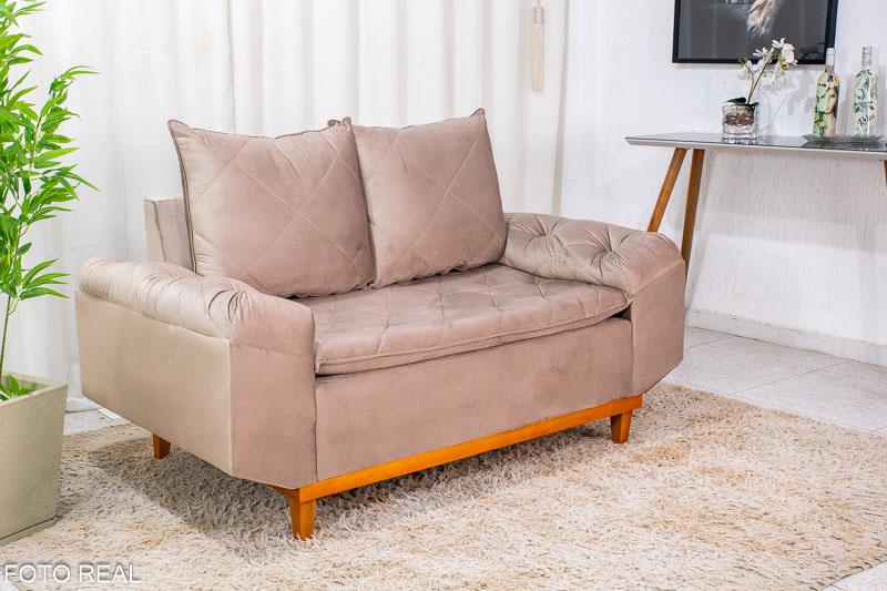 Sofá 2 lugares Bélgica 1.60m Veludo Bege Claro