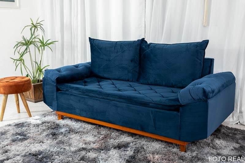 Sofá 3 lugares Bélgica 2.00m Veludo Azul Escuro
