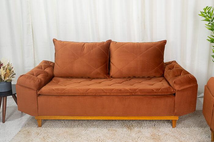 Sofá 3 lugares Bélgica 2.00m Veludo Terracota
