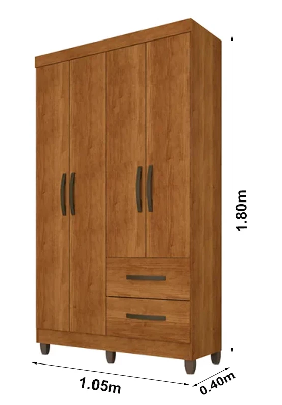 Roupeiro Estrela 4 Portas 2 Gavetas Cinamomo Larg. 1.05m Sallêto