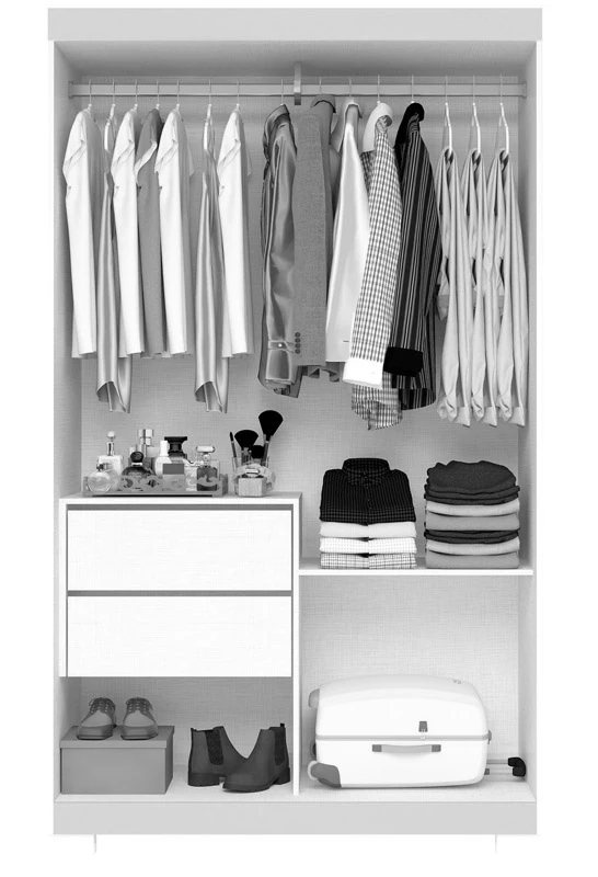 Roupeiro Samira 2 Portas 2 Gavetas Nature/Off White Larg. 1.09m ACP