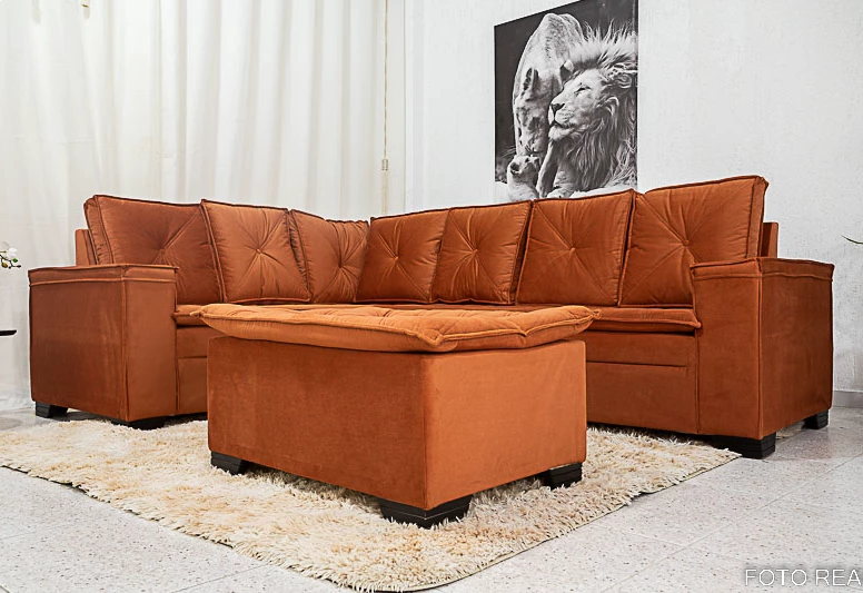 Sofá Canto 5 lugares com Puff Alemanha Veludo Terracota A33