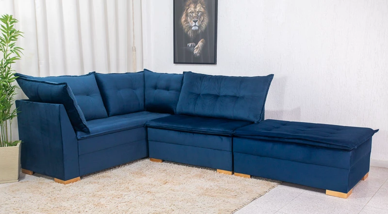 Sofá de Canto Vênus 3 em 1 Azul 529