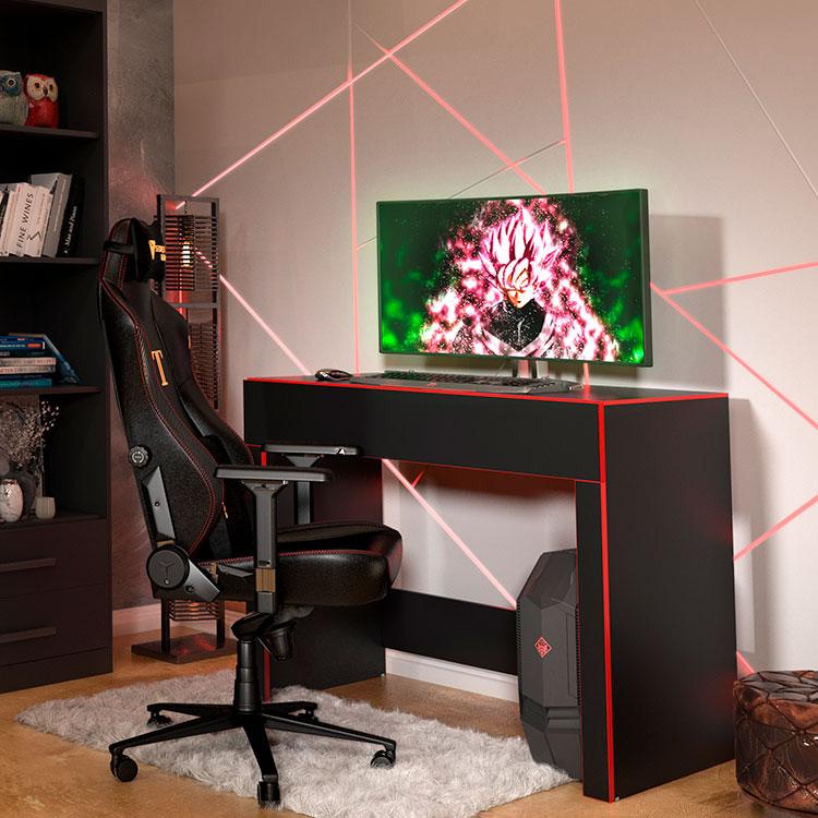 Escrivaninha Alice, Côr Preto/Vermelho, Minas Plac, Medidas: Alt 0,76m Larg 0,96m Prof 0,47m, Estrutura 100% MDP com Tampo em Chapa de MDF 15mm e 1 Gaveta com Corrediça Metálica.